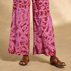 The easiest. breeziest. warm weather pants. with a beautifully draping wide-leg silhouette. big floral print and side seam pockets. Viscose. Machine wash. Imported. Exclusive. Sizes XS (0?C2). S (4?C6). M (8?C10). L (12?C14). XL (16?C18). XXL (20?C22). 29 inseam.